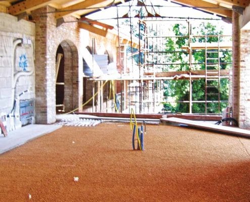 L’isolamento termico del sottofondo è importante soprattutto quando il solaio divide ambienti riscaldati da spazi non riscaldati. Tra un appartamento e l’altro ha invece la funzione di evitare le dispersioni e i “furti” di calore tra le unità abitative quando è previsto l’impianto di riscaldamento a pavimento. L’isolamento del sottofondo serve soprattutto per proteggere dai rumori di calpestio con la realizzazione di un pavimento galleggiante con isolamento termoacustico di sughero biondo naturale in pannelli SoKoVerd.LV o in granuli SugheroLite.
