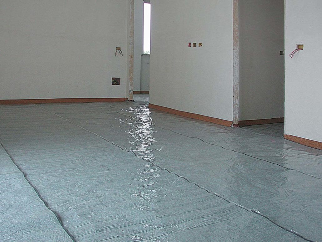 Una volta posato il sughero in granuli (o in pannelli) bisogna accertarsi che tutti gli impianti elettrici e idraulici risultino ricoperti. In caso contrario, per evitare che il rumore passi attraverso i cosiddetti “ponti acustici”, è indispensabile l’utilizzo dello strato separatore anticalpestio KoSep.F. Questo è costituito da una ovatta sintetica agugliata, termo-apprettata e accoppiata con un film di polietilene.